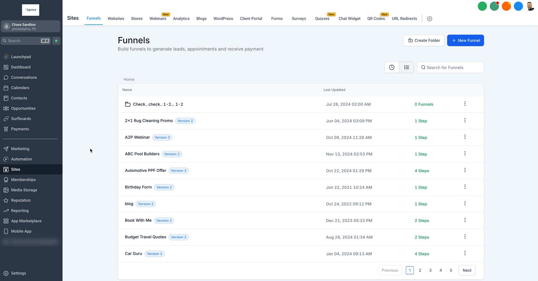 • Navigate to your Funnel or Website Builder in the HighLevel dashboard.