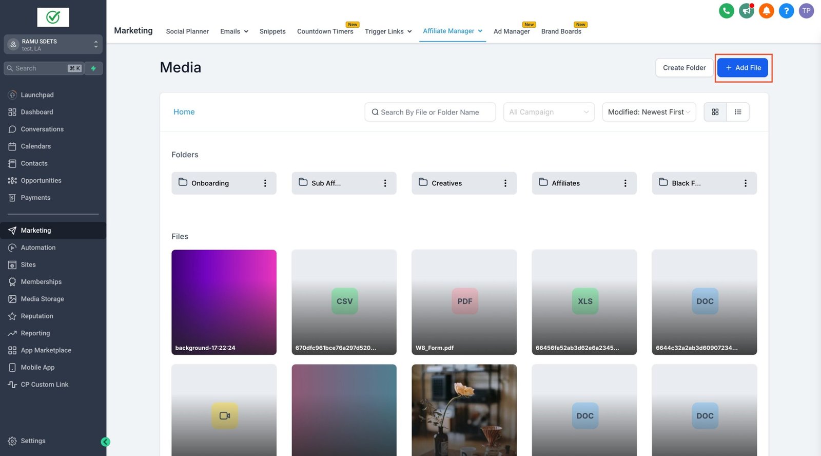 - Click “Add File” to upload a new media asset.