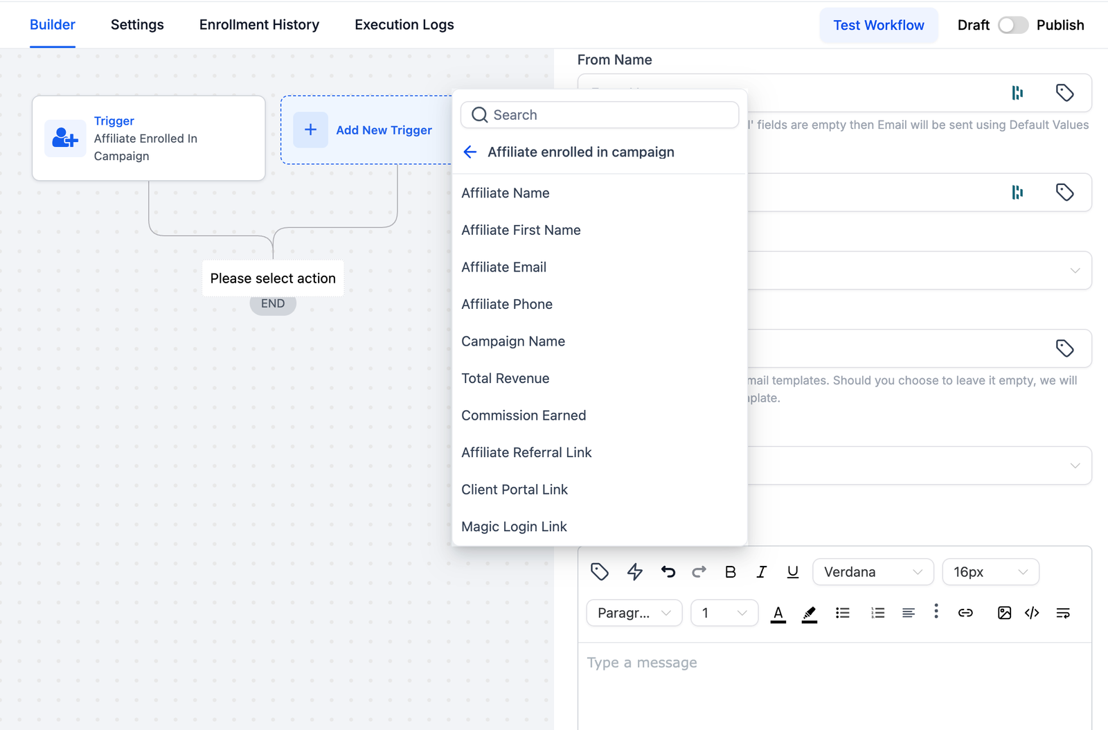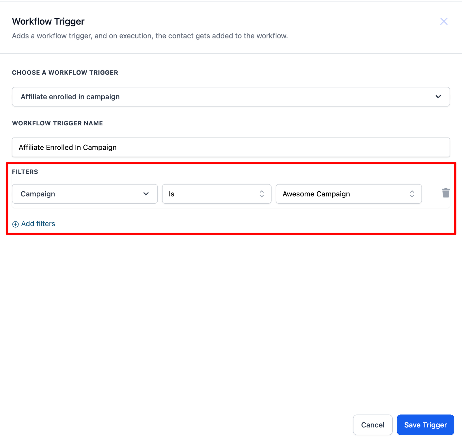 The Affiliate Enrolled In Campaign trigger is designed as a entry point to  capture all important data points that are created for an affiliate including :