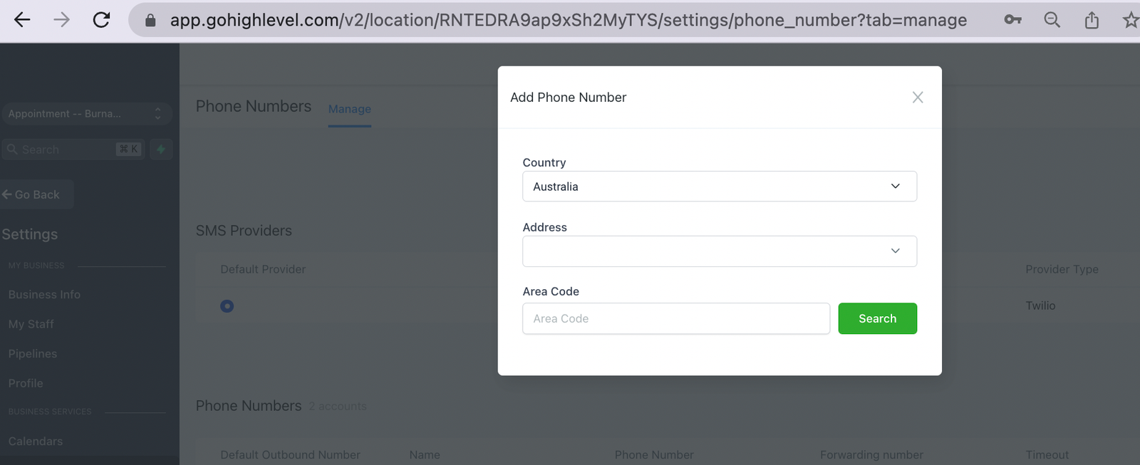 Since our search function is basic and it doesn’t show much information about whether or not the Twilio number has SMS/voice capabilities, click here to learn how to buy a Twilio number for the HighLevel location inside the Twilio console.