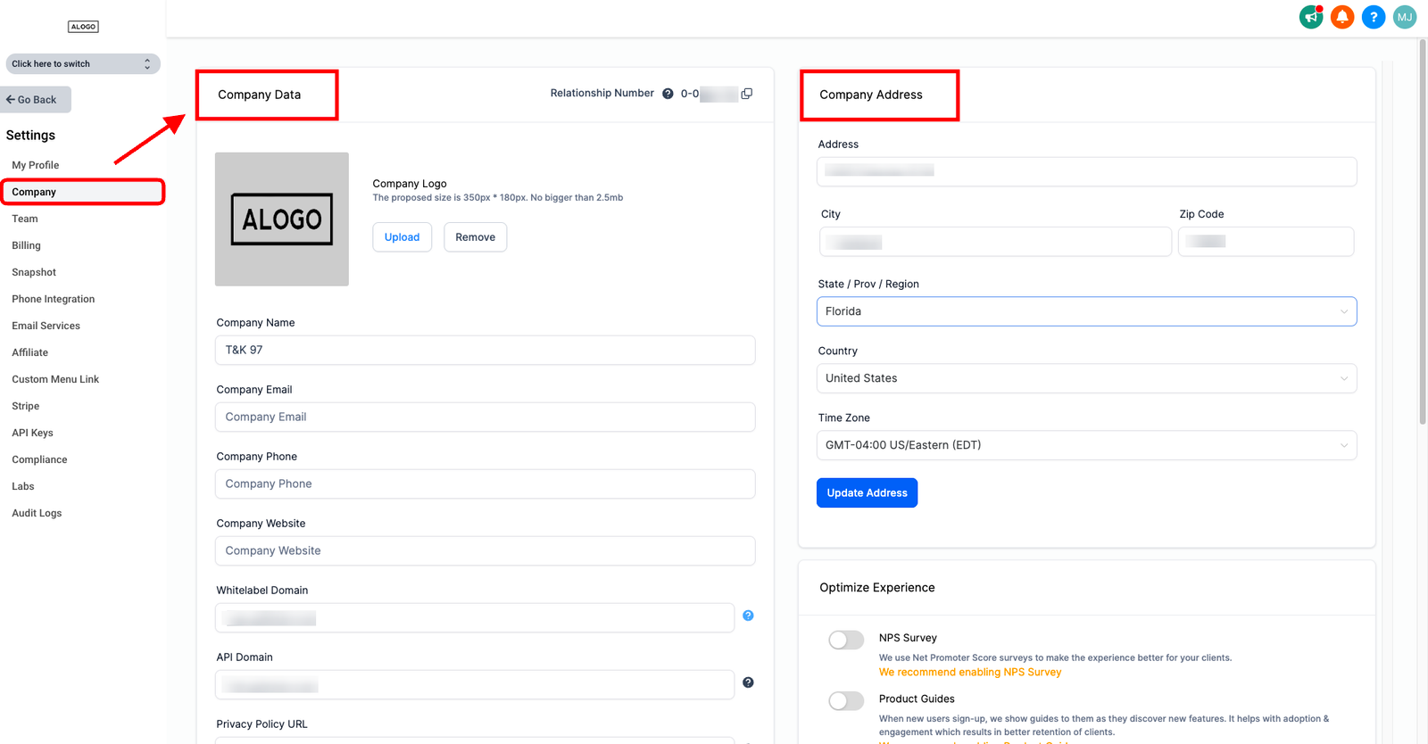 - Company Name – *Used for widgets (Powered by ‘Agency Name’)