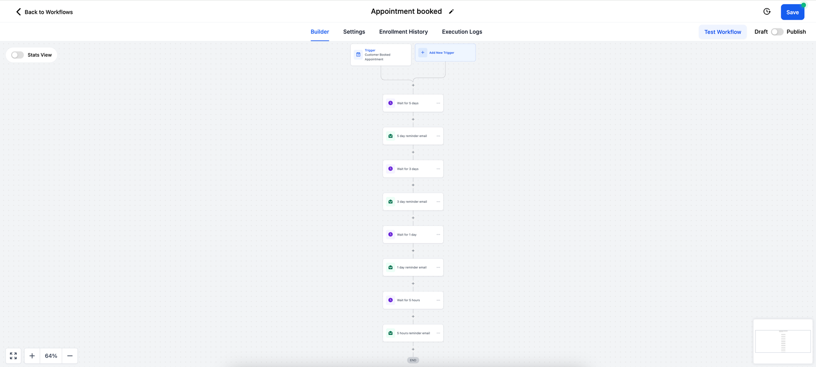 Explanation: Recurring appointments will not trigger entry through the “Customer Booked Appointment” trigger.