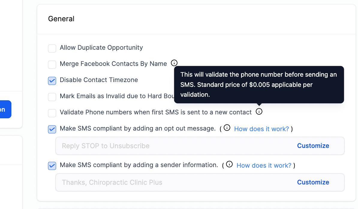 3. Do not send messages to SMS-incapable devices like landlines, Enable the Number Validation feature for this. This feature will look up the number before sending out the message and enable and temporary DND on the contact.