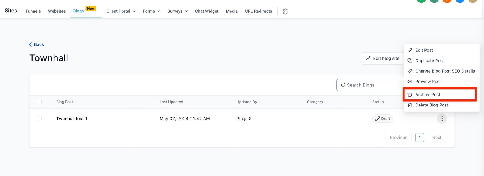 5. Archive/ Unarchive Post – If you would not like to view the blog post in list view, it should archived and unarchived. Archive post doesn’t remove the content from live URL, if you want to move the post back to draft the user can Update Blog Post, while clicking on Continue the user can move the blog post to Save as Draft.