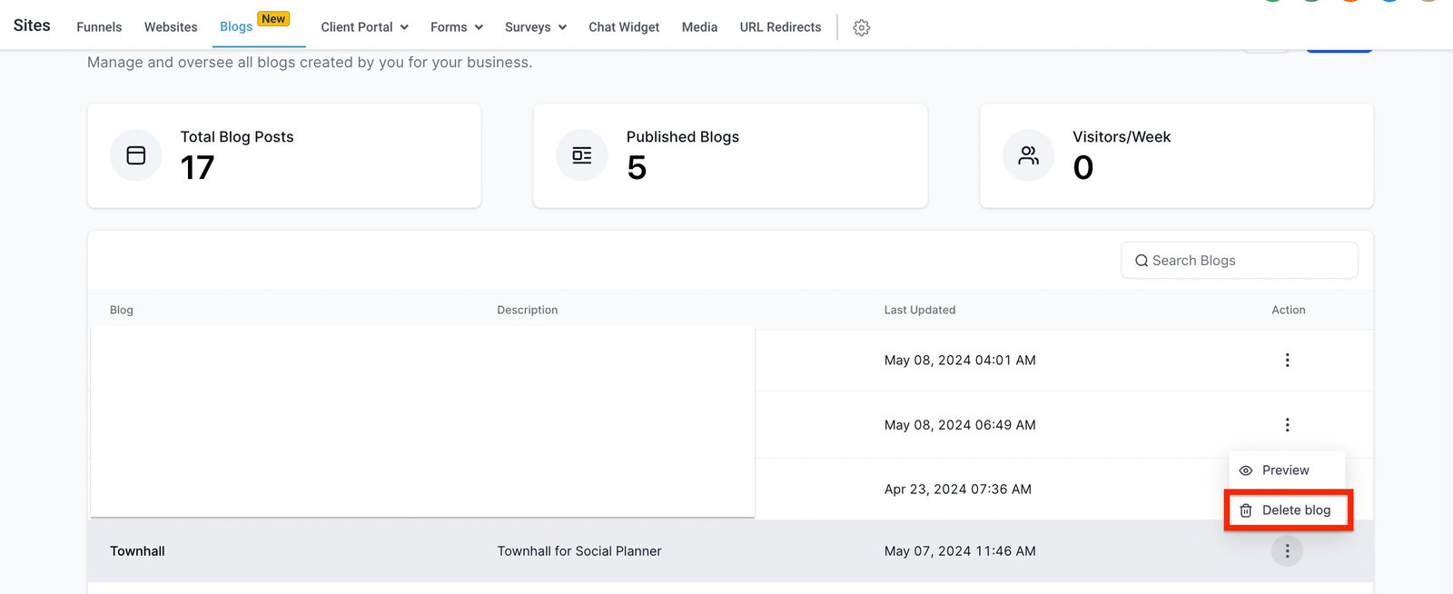 3.Delete – If the blog content is outdated, the user can delete the blog.