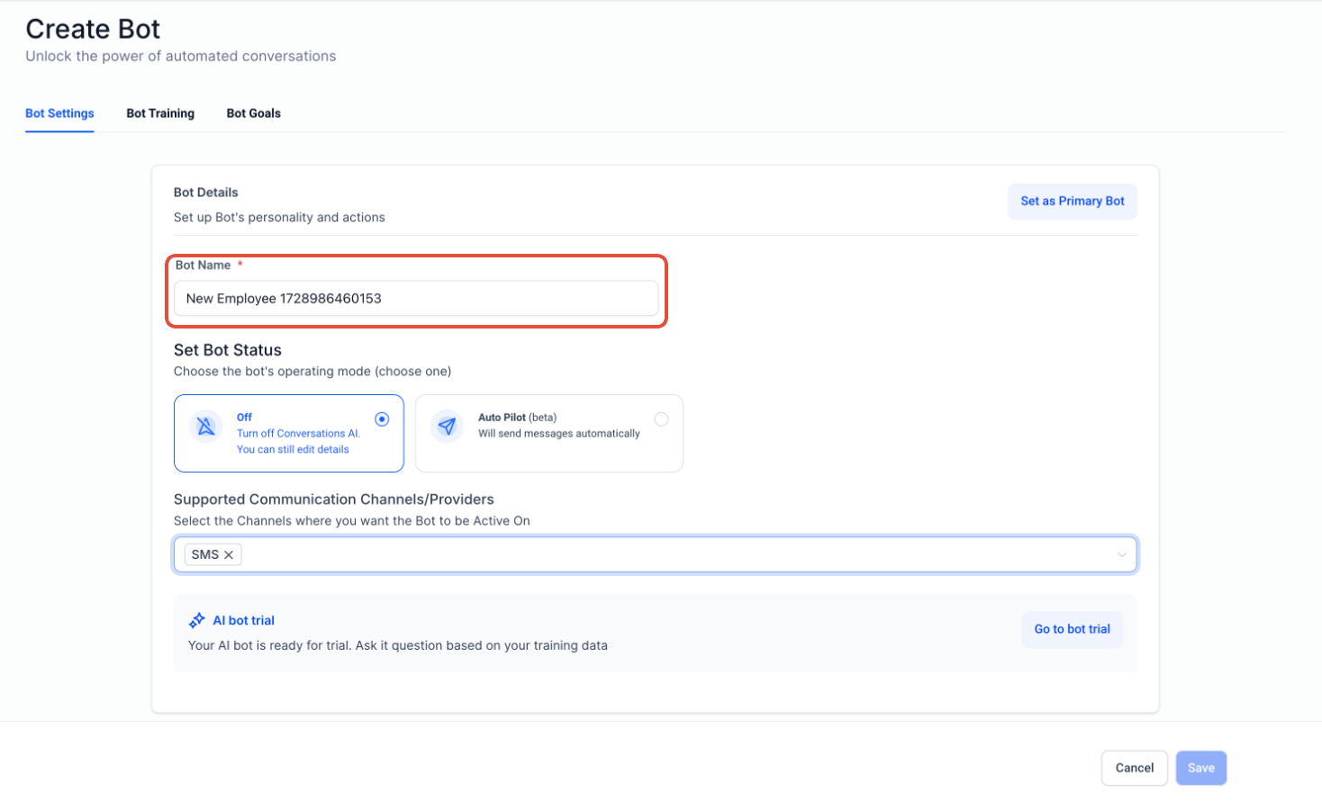 If you are creating a new bot, you need to edit the Bot name or assign a new name before accessing the feature