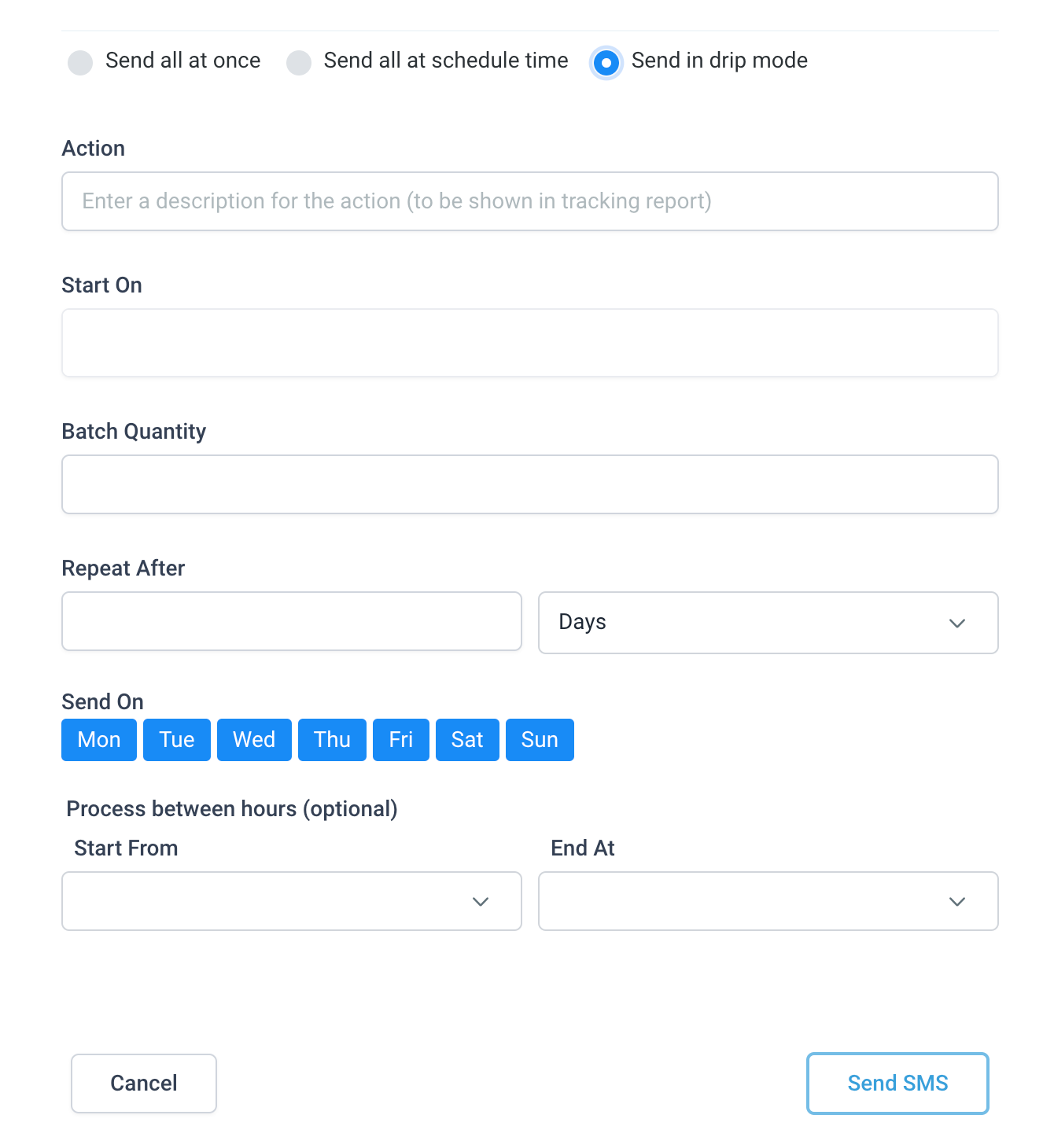 - Send on – Choose to send SMS only on particular days of the week