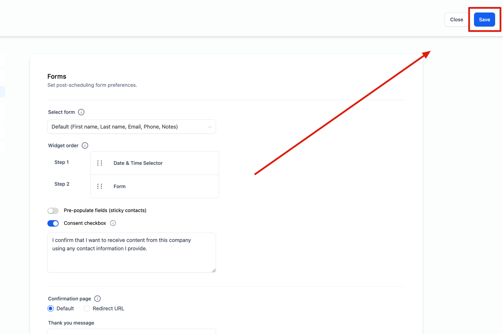 - Drag and reorder the Date & Time Selector and Form to your desired sequence.
