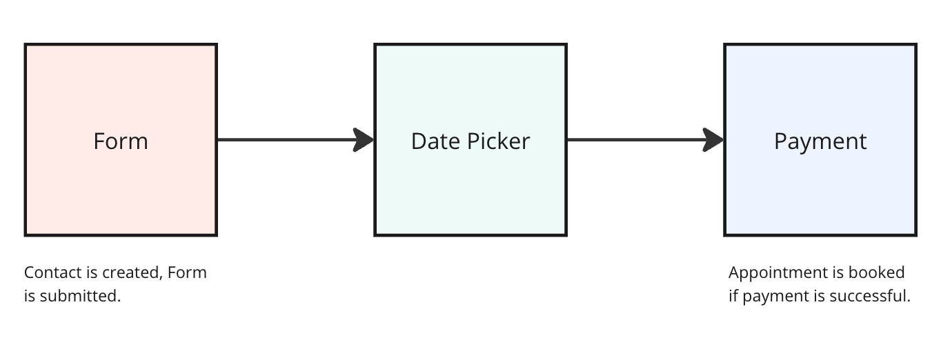 - Outcome: The appointment is booked, a contact is created in the system and the form is submitted.