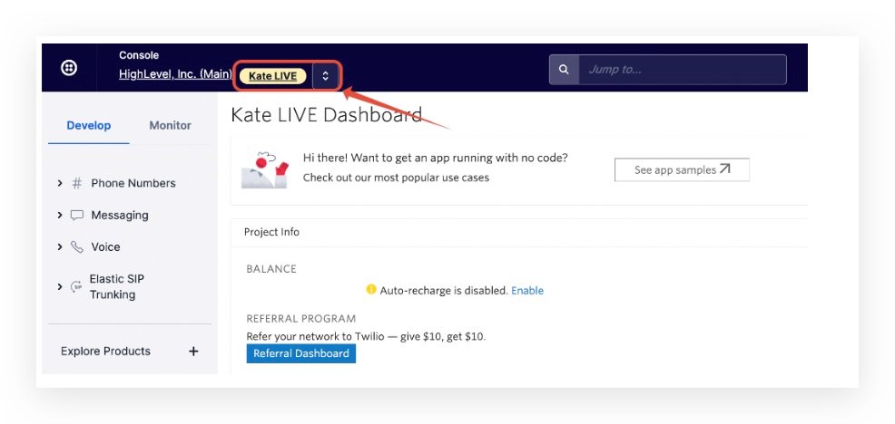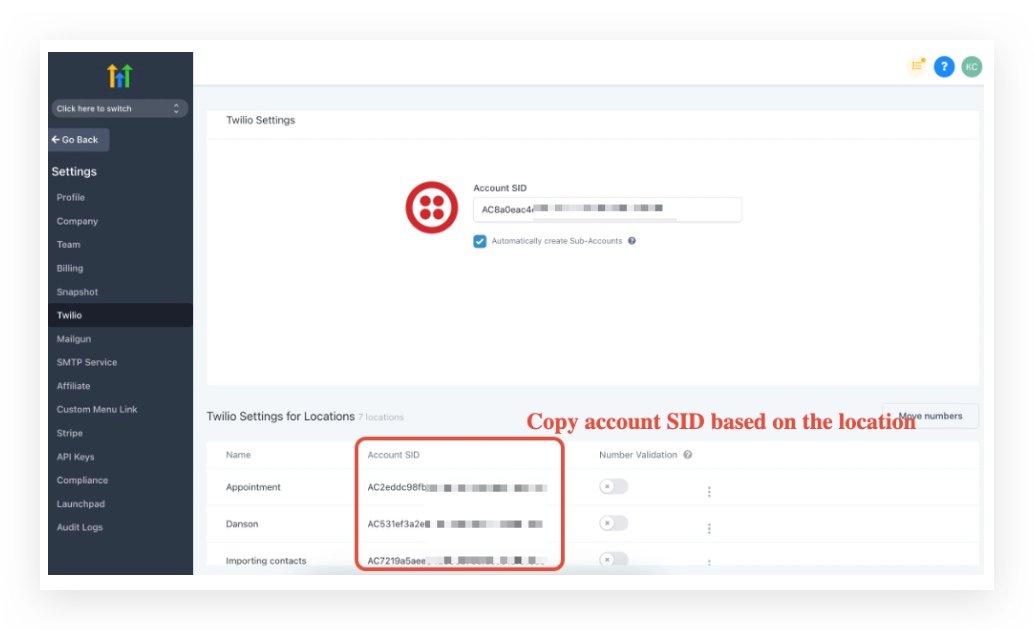 - Step 3: Search based on the Twilio Subaccount SID in HighLevel agency settings -> Twilio