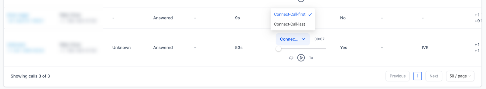 Multi call recording for IVR: Users can select between different call recordings for IVR calls