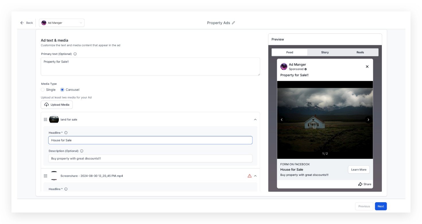 Below is a short video demonstrating how to create a Carousel Ad using media from the Media Library, along with detailed steps outlined as follows: