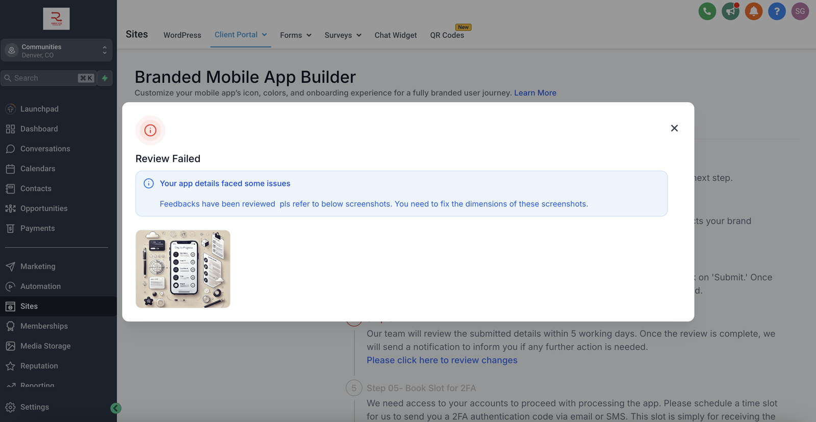 - Description: If the status has been marked as Review failed by our team, it would require additional information or correct information, as mentioned