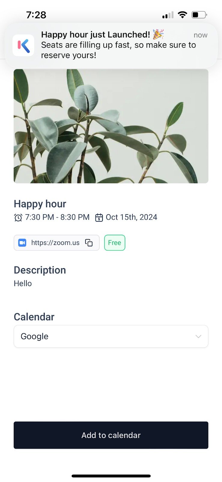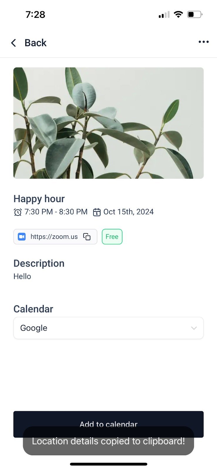 - Event Details: Share key details like date, time, location, and descriptions, all in one convenient spot. Add zoom links, google meet links or even a physical address.
