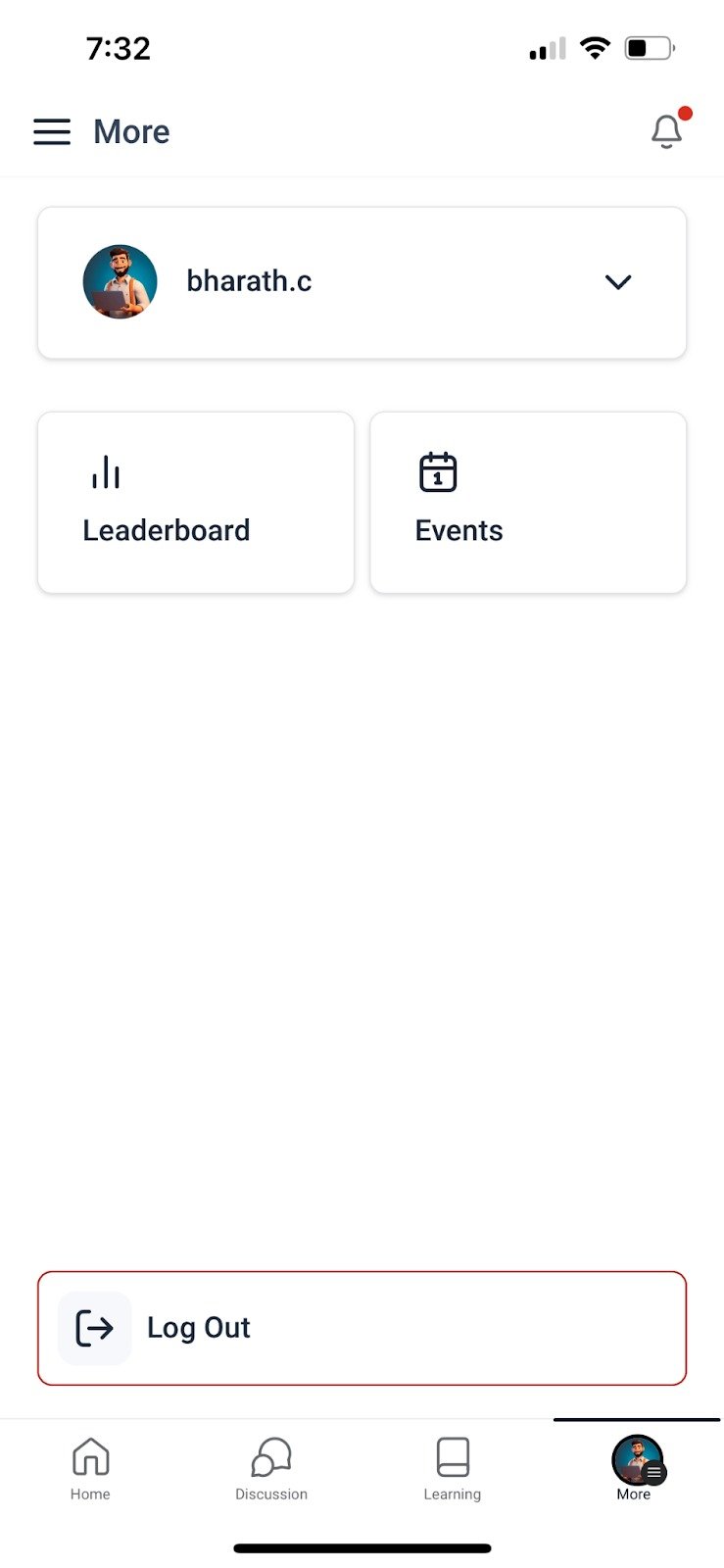 We have revamped the flow a little, with events & profile section now visible under MORE section and notifications + chat icons on top.