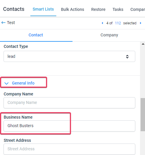This process doesn’t have backward compatibility. Once a company is created based on the business name, any change in the company name or its details doesn’t reflect back on the Business Name field and other synced fields in the contact’s General Info.
