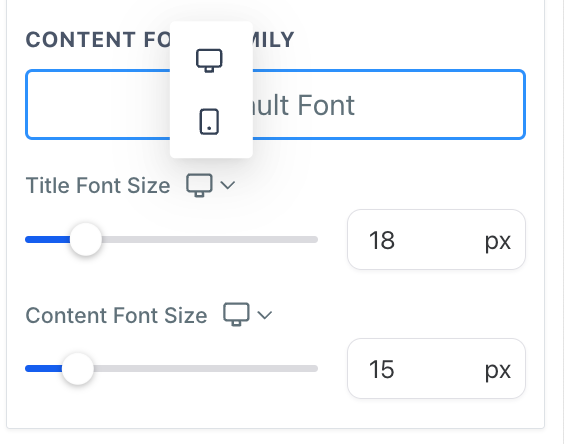 Click on the desktop symbol and changing it to mobile will open the mobile view editor and the changes made in font size in this view will only affect mobile view.
