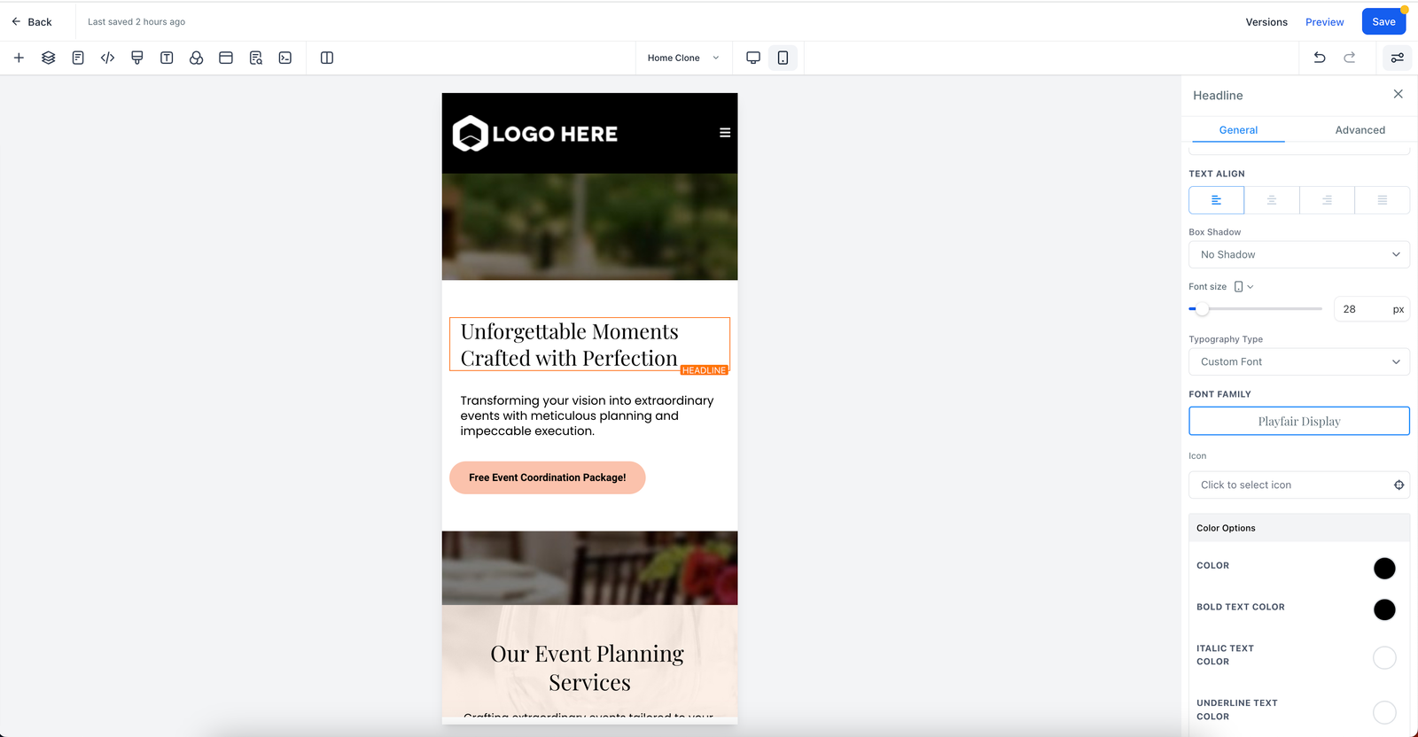 • Change the font size specifically for mobile. Note that this change will not affect the font size on desktop.