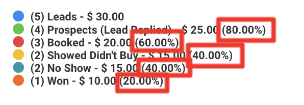 The percentage on the right for the Prospects stage means that 80% of the leads who joined the Facebook Leads pipeline will move forward to the Prospects stage.
