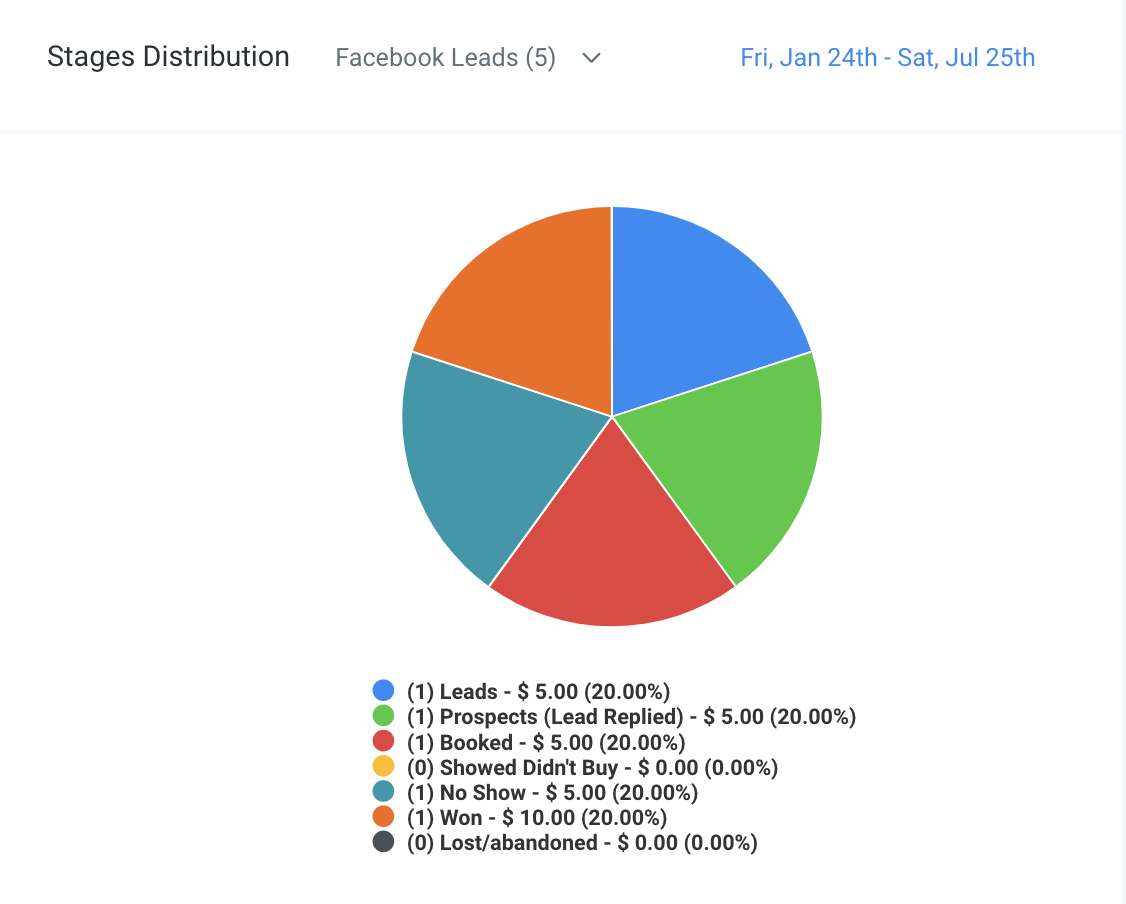 If you want to keep track of stage like No-shows, showed didn’t buy, you could refer to the Stages Distribution chart.