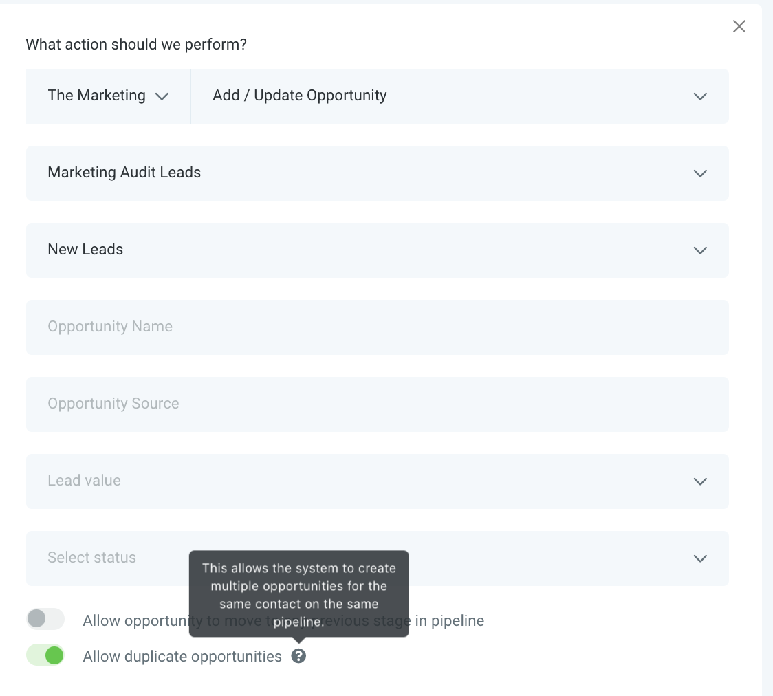 Make sure that the trigger action Add/Update Opportunity also has Allow duplicate opportunities toggle on.