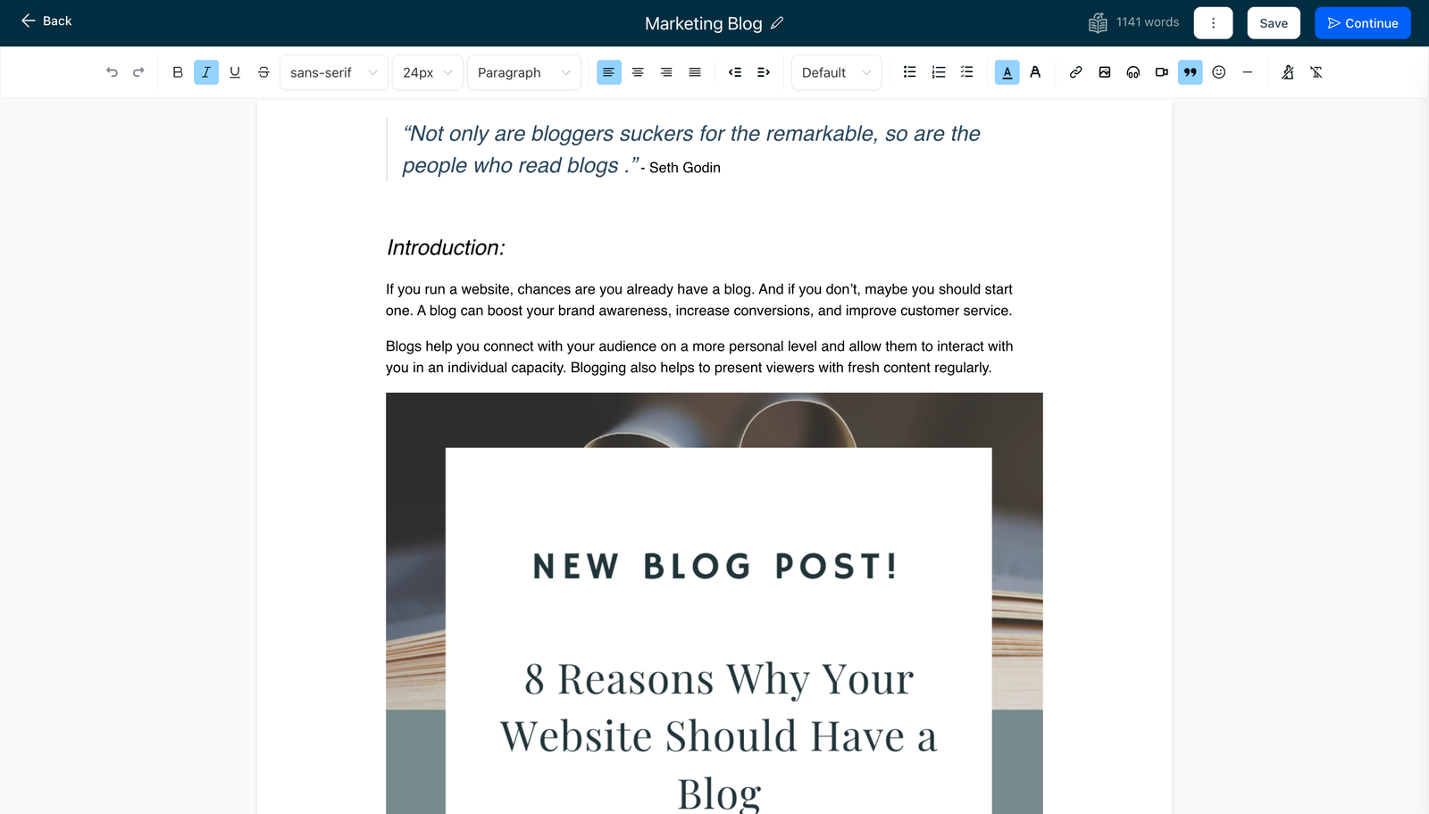 Create a beautiful blog with our powerful blog post editor, which can be used to compose, optimize for SEO and content marketing, and distribute it anywhere to attract readers.