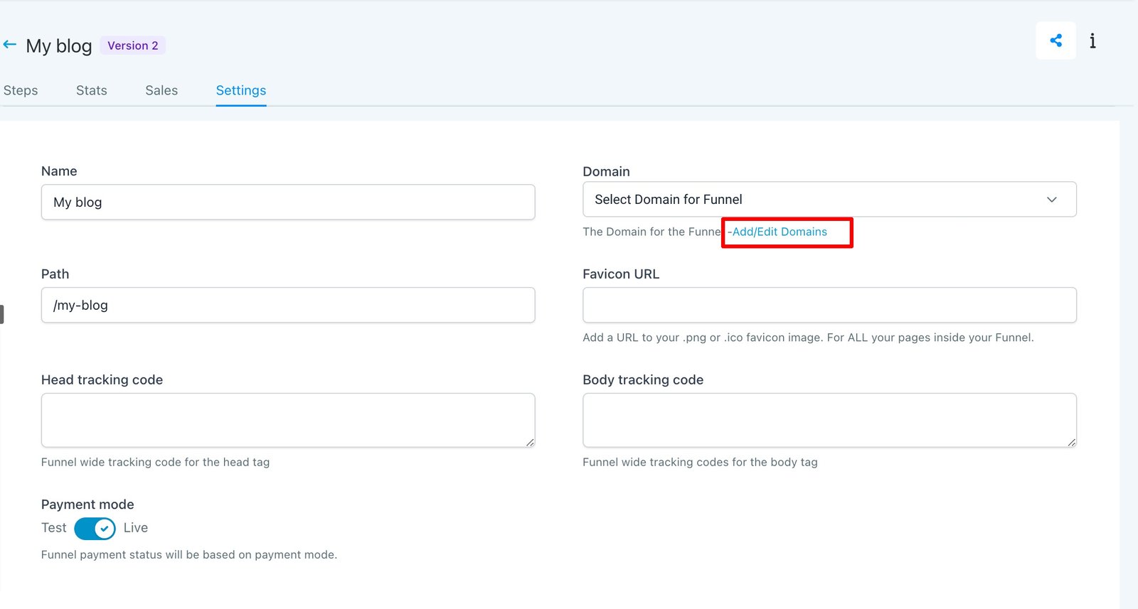 4. Add Domain to the site from Funnel / Website Settings, if it is not already added
