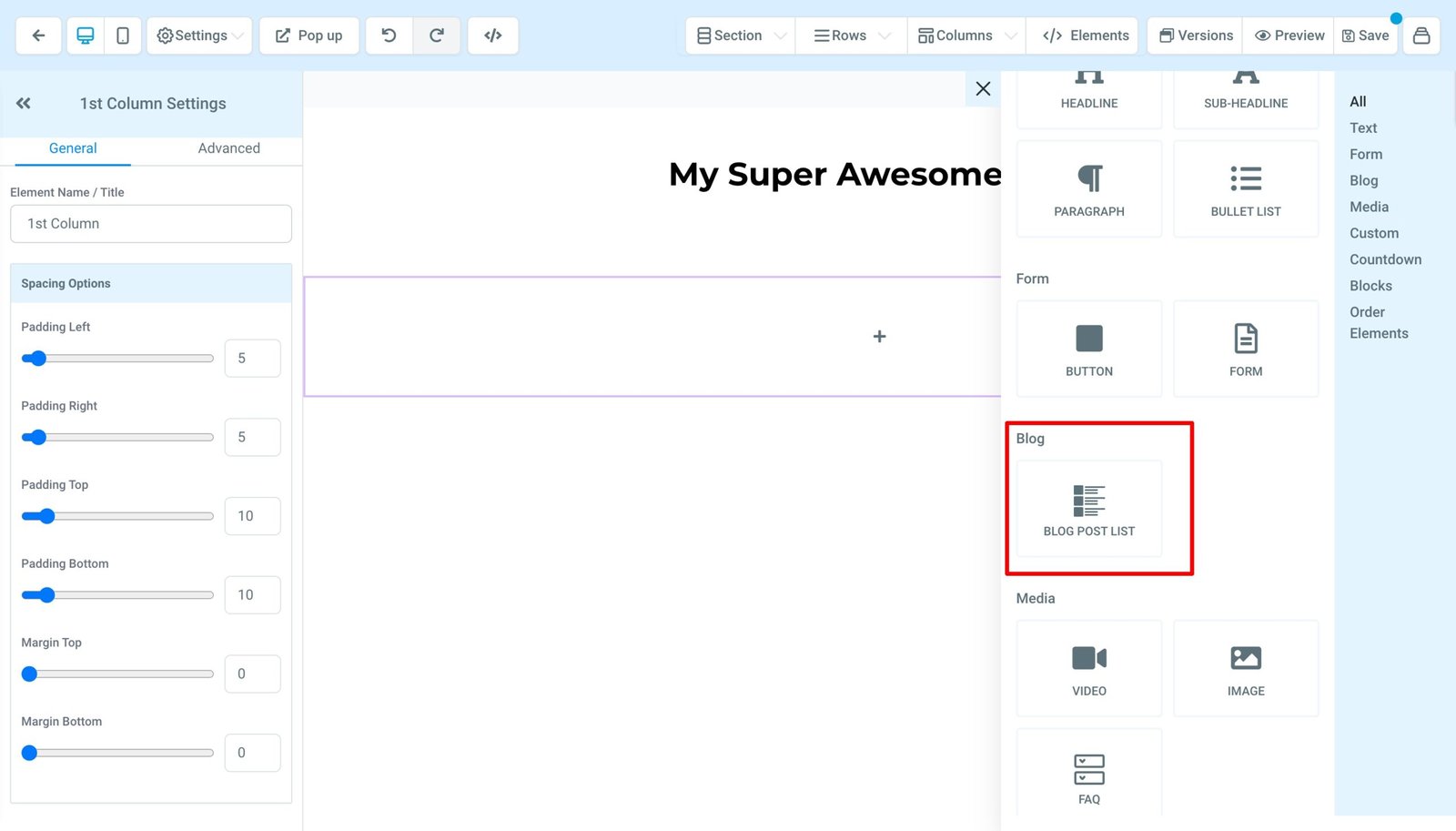 Step 2: Add a Funnel or Website with the Blog Post List element
