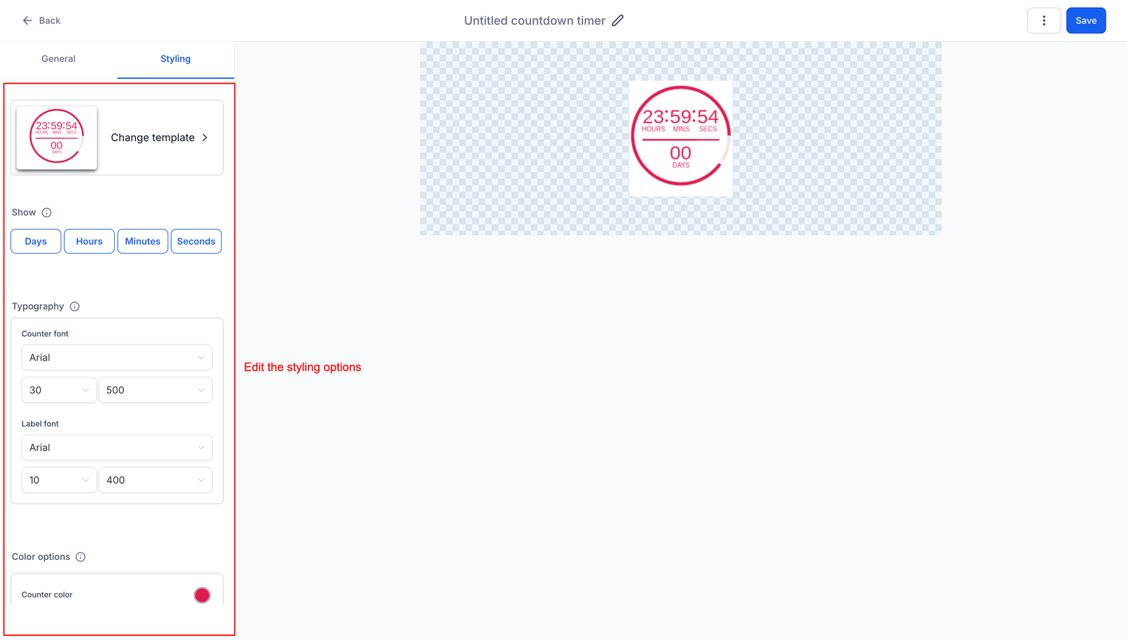 • You can change the appearance of the timer by adjusting the font, colors, and overall design to match your branding.