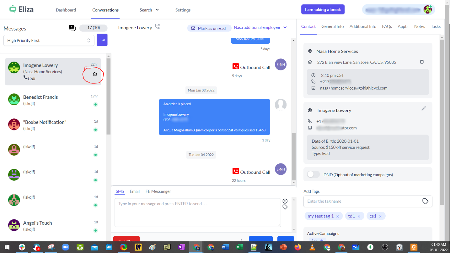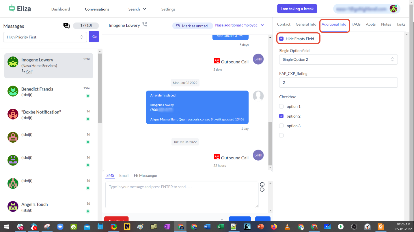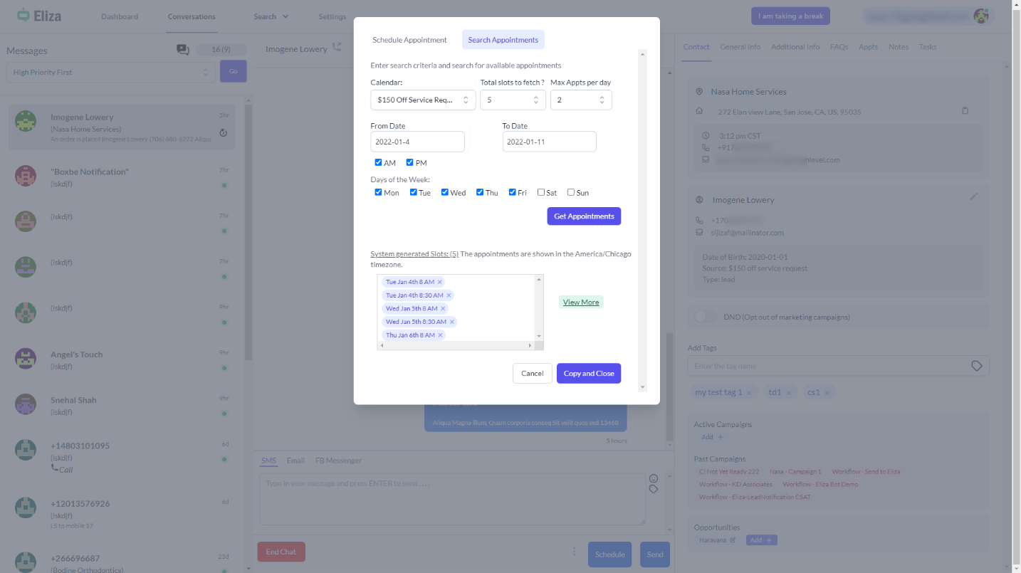 Alternatively, if the agent wants to see only these contacts, they can filter for “Send to Eliza” and respond immediately upon arrival.
