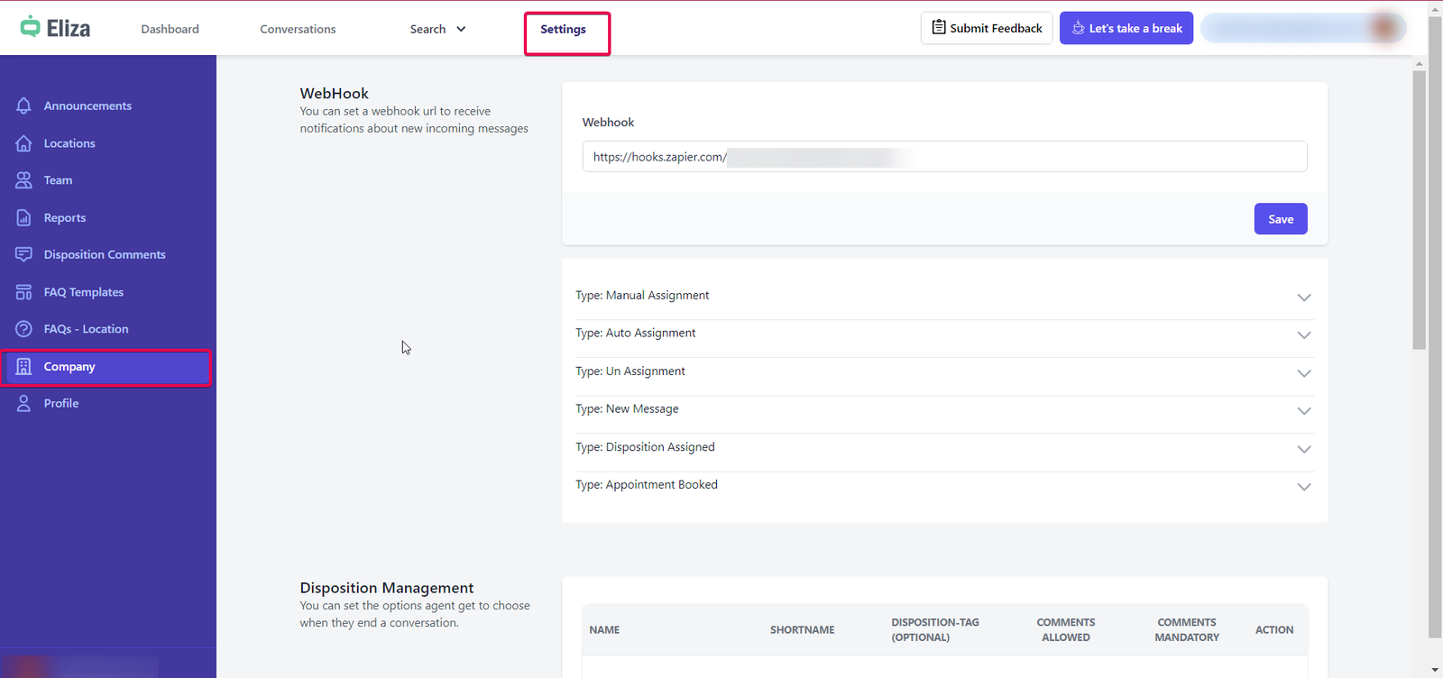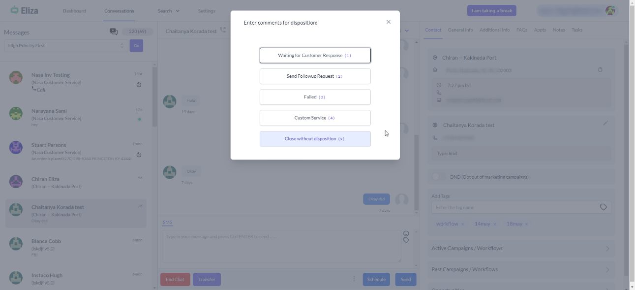 An agent can choose the disposition while ending the conversation, and the comments entered while assigning the disposition can be retrieved from Settings > Disposition Comments. The disposition can also be re-ordered so that the ordering reflects on the ‘Conversation’ screen when you click ‘End chat.’