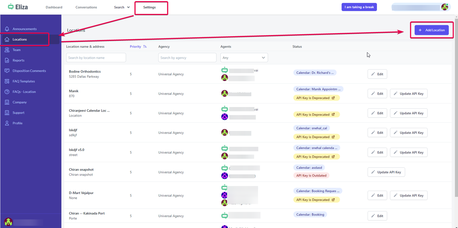 Setting up a new location in the Eliza Agent Platform