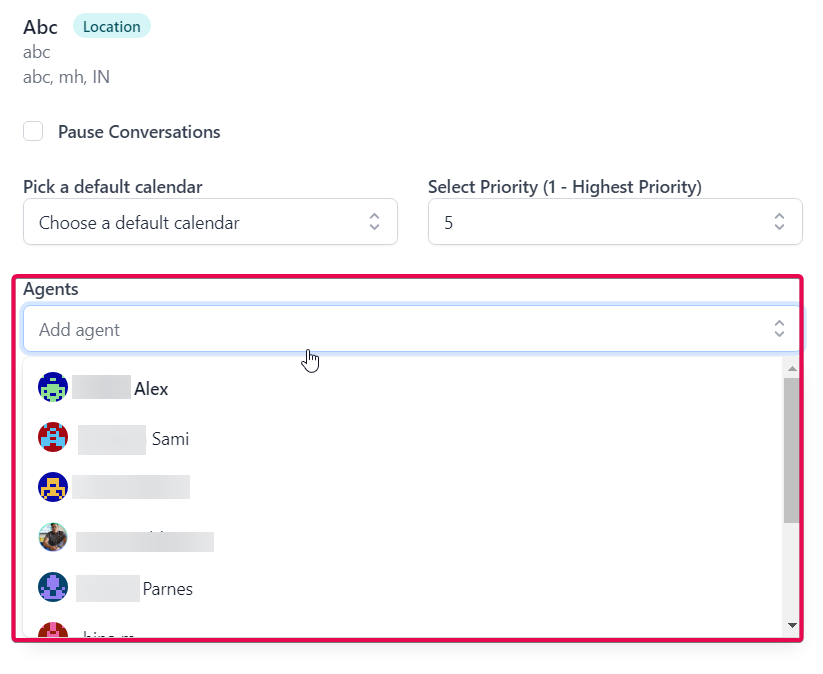 Choose the agents who can handle the conversations in this Location from the previously created list of agents.