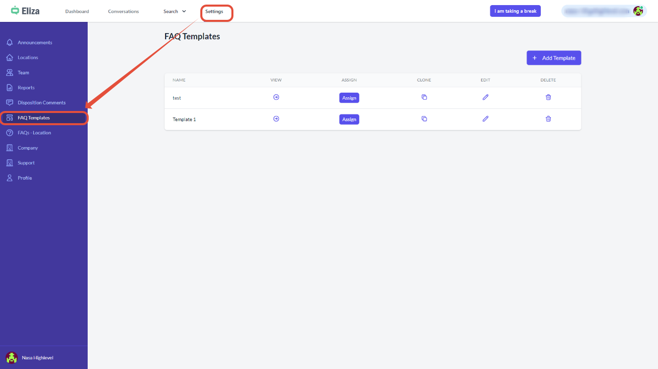 FAQ management – Templates and Location FAQs