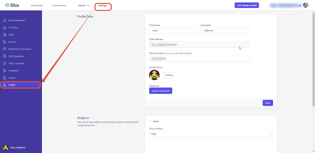 Eliza Agent Platform Settings within the CRM