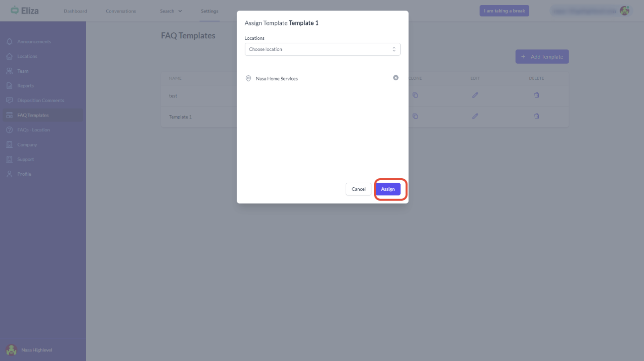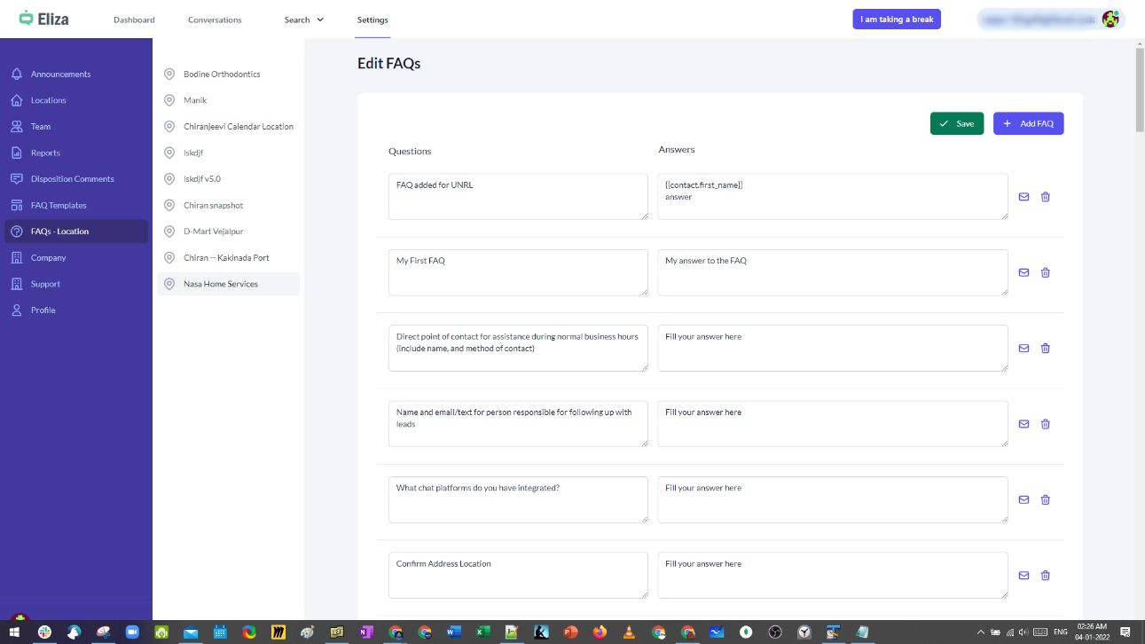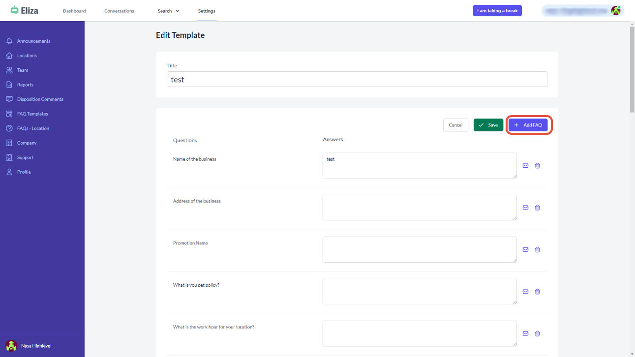 FAQ management – Templates and Location FAQs