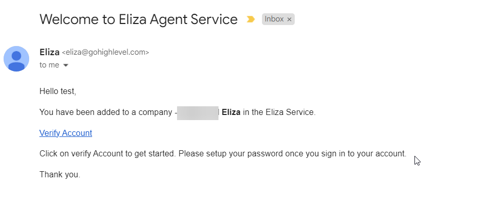 Eliza Account setup
