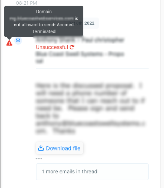 - The domain is not allowed to send: Account Terminated.