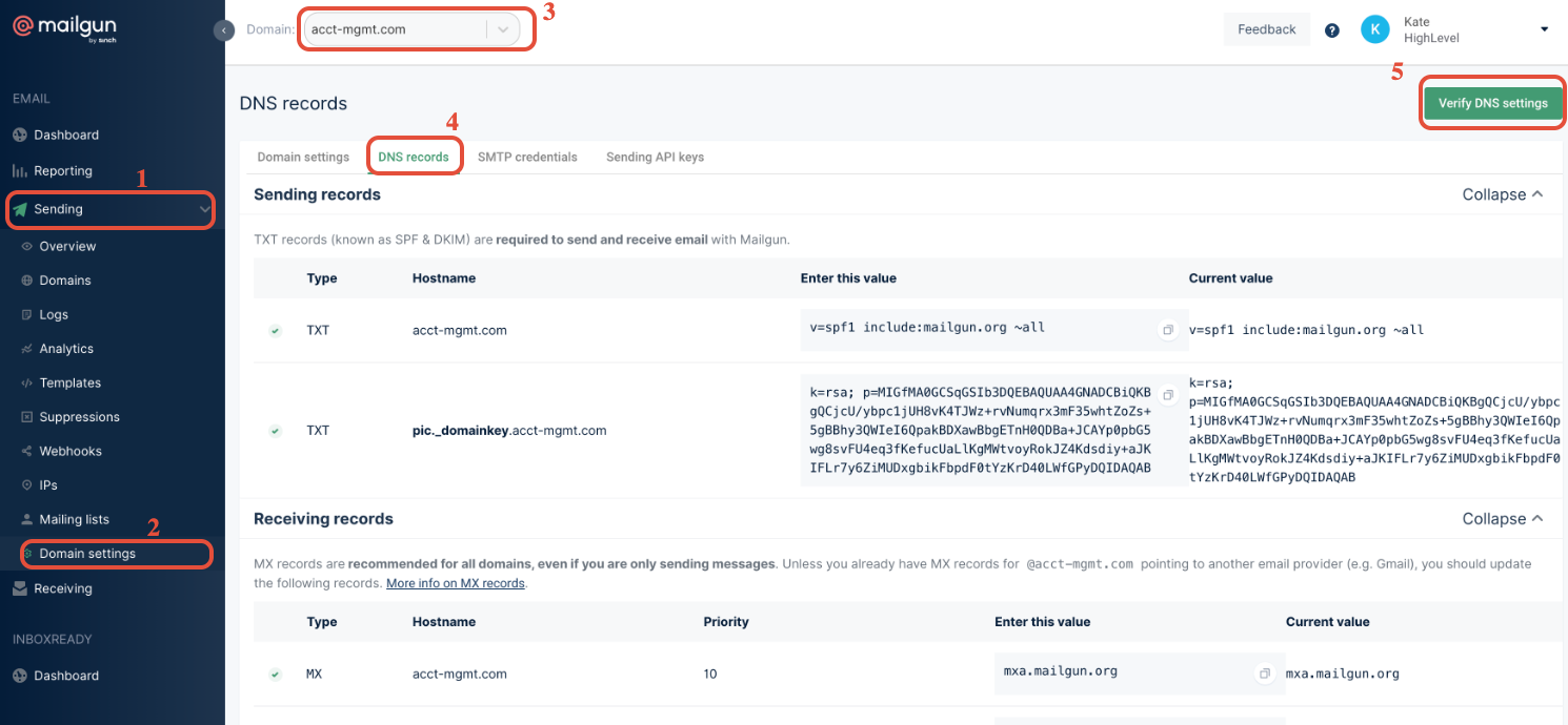 Here are some steps you can take to fix this issue based on your current Mailgun sending domain: