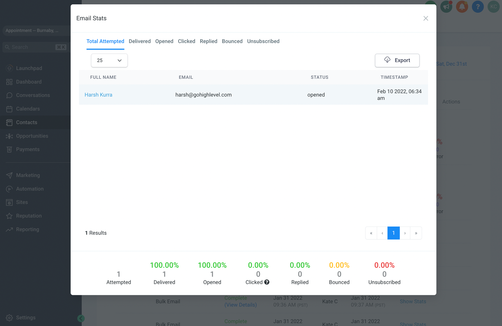 - Where will email statistics show for every email activity?