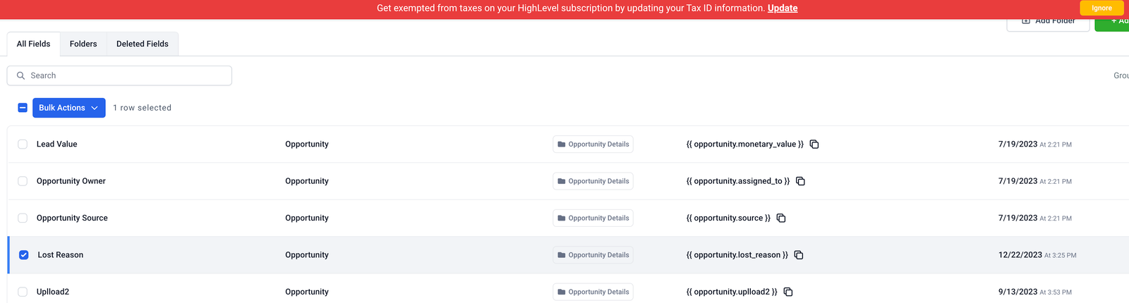 Step 2: Select Lost Reason and click on Bulk Actions > Edit