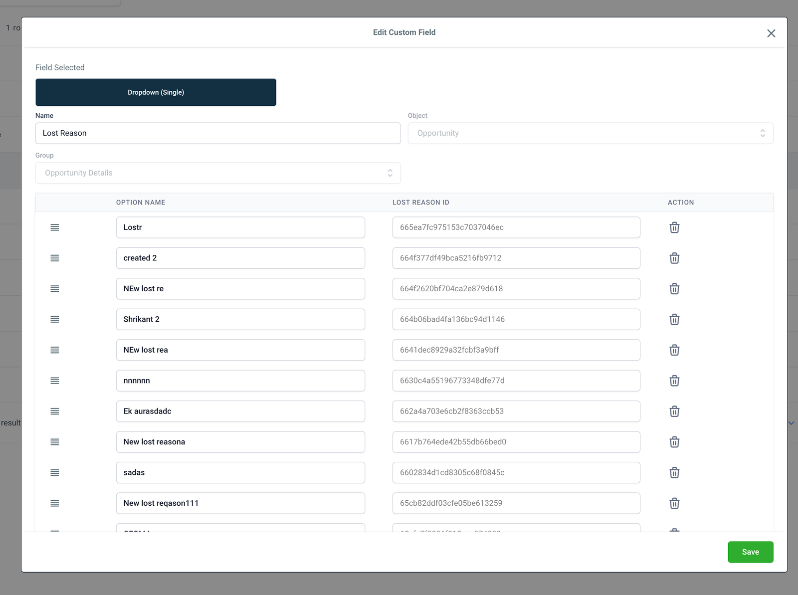 Step 3:Make changes to your lost reason values in the modal and save for them to reflect.