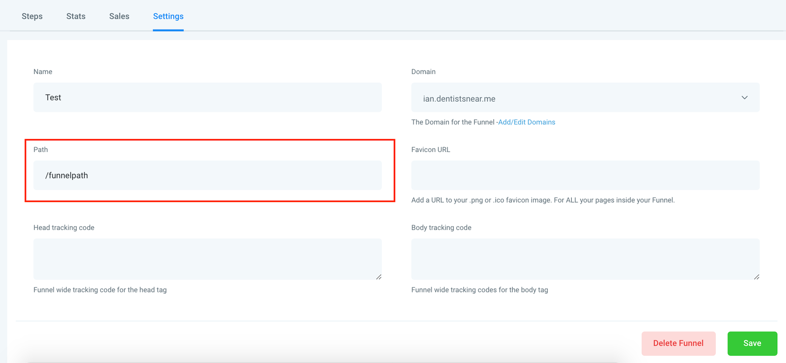 - Funnel URL –> This is the URL dedicated for a funnel which can be configured from the Settings. This will always load the first step in the funnel