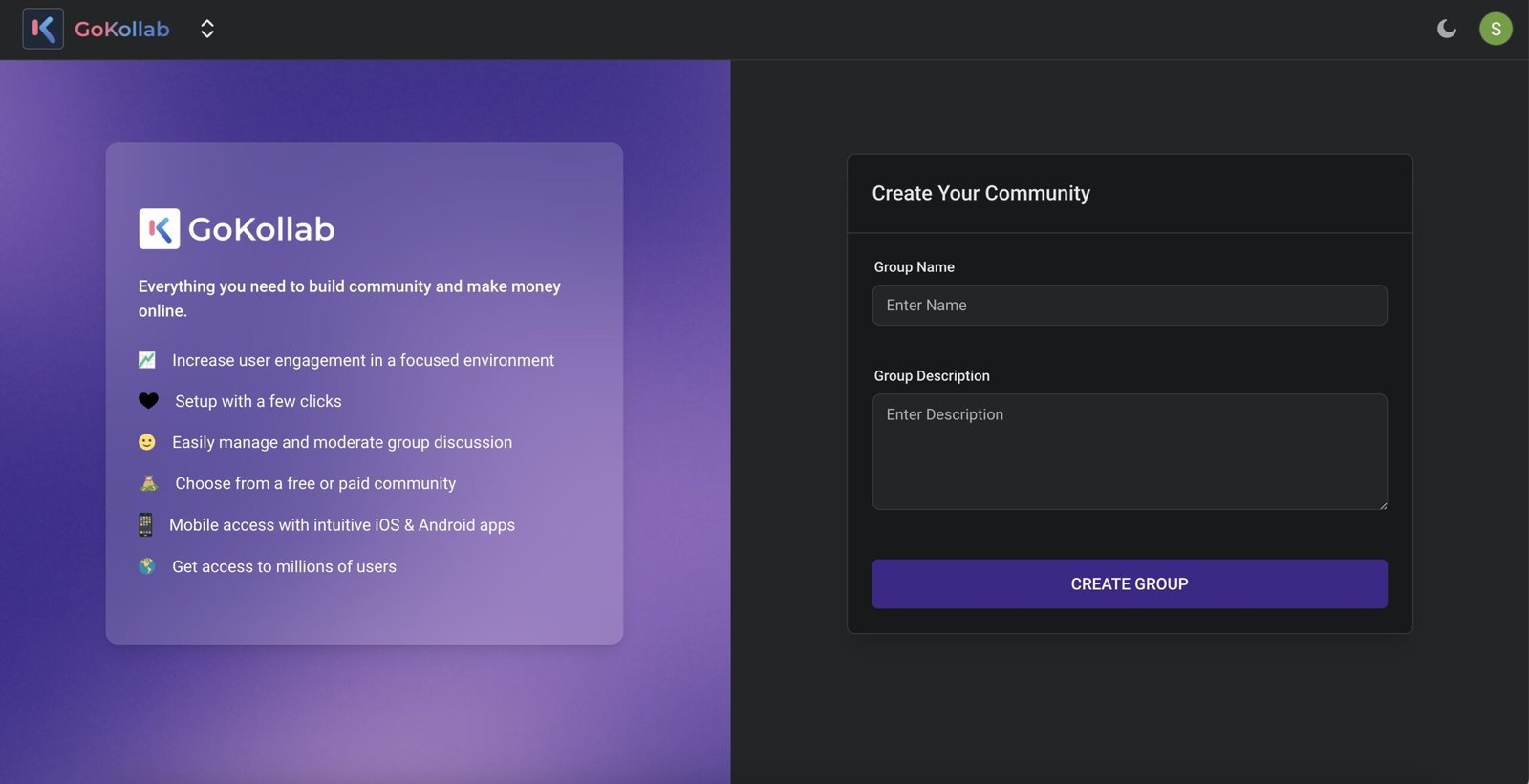 - Find Your People! Browsing through GoKollab has never been easier. Search for free and paid groups, explore different communities, and find your new favourite spaces to hang out.