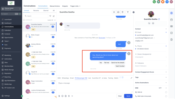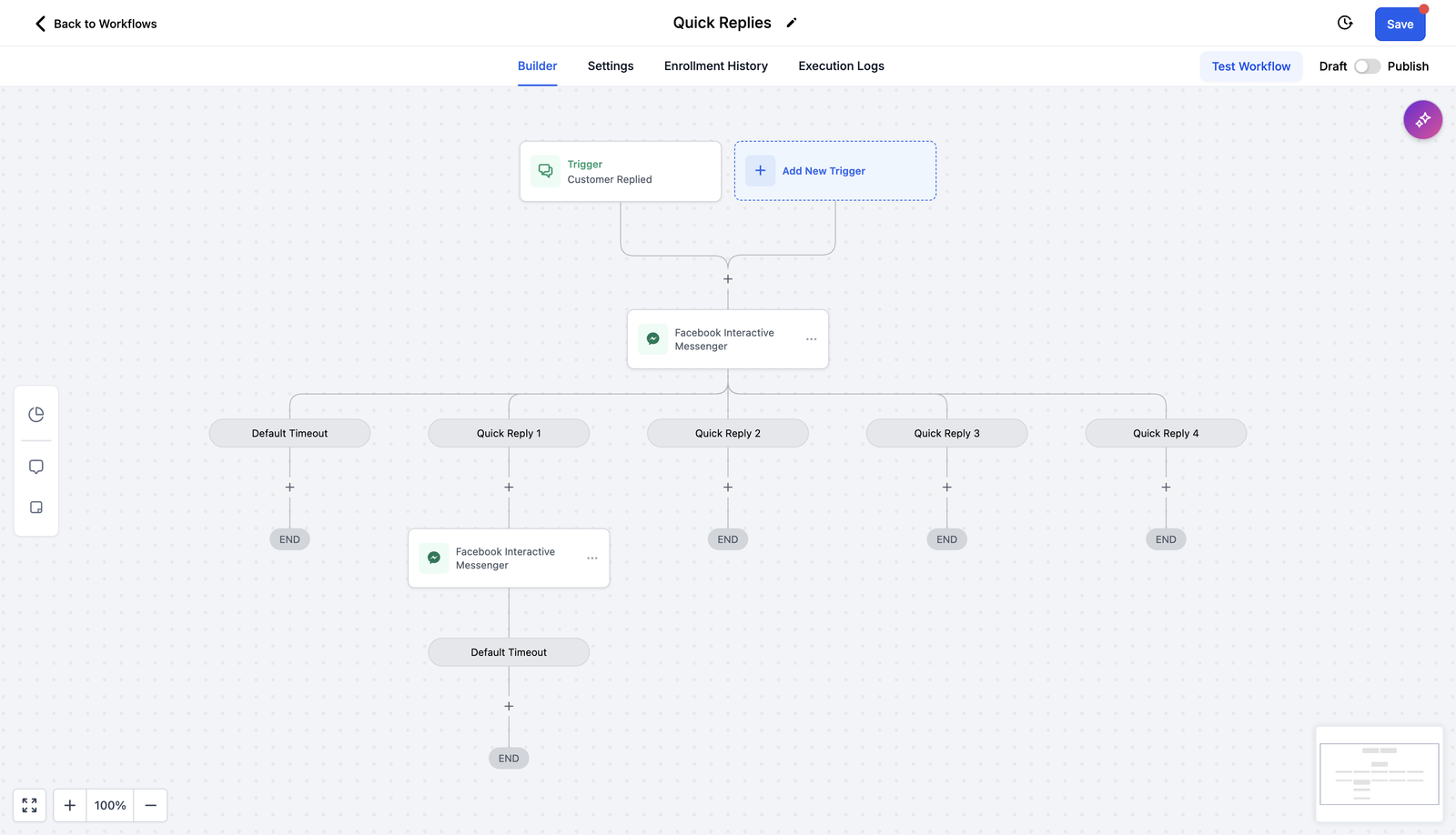 - Facebook: You can add Quick Replies alongside buttons and images, providing more options for customer interactions.