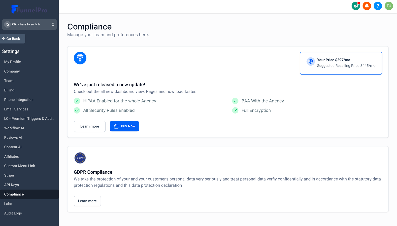 HighLevel has worked with The Compliancy Group consultancy to ensure that we are in full compliance with the HIPAA Privacy Rule and the HIPAA Security Rule so that we can enter into HIPAA Business Associate Agreements (BAA) with our customer Agencies.