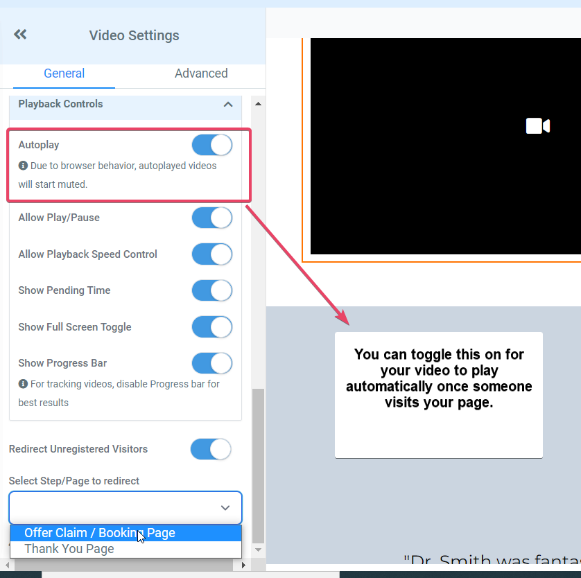 To avoid such a situation the Redirect Unregistered Visitors toggle can be used to push such visitors to another page which has an Opt-In Form so that they can fill in their name and other details, once they do that they would be brought back to the video. This redirect only pushes those visitors to your designated page that do not have any cookie attached to them which would have otherwise contained information about them.
