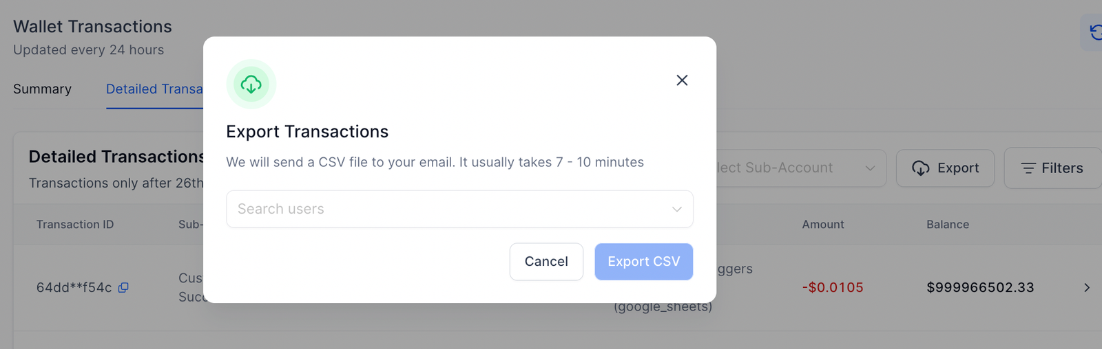 - How can I download all transactions as a CSV?