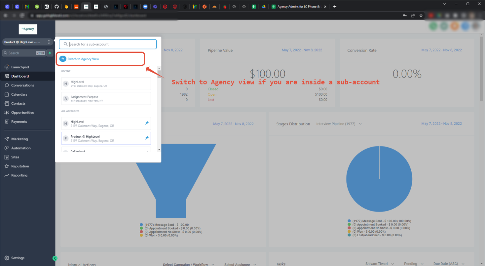 Please switch to your ‘Agency View‘