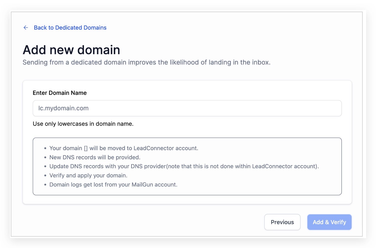 - Step 1: Add Your DomainOnce you are in the Sub-account